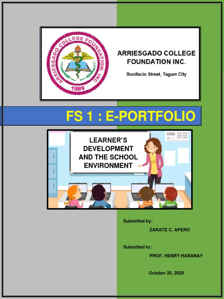 FS1 – EPISODE 1 : THE SCHOOL AS LEARNING ENVIRONMENT