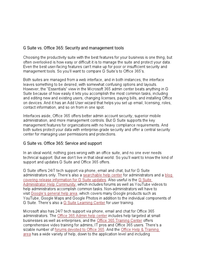 management tools. So you’ll want to compare G Suite’s to Office 365’s.