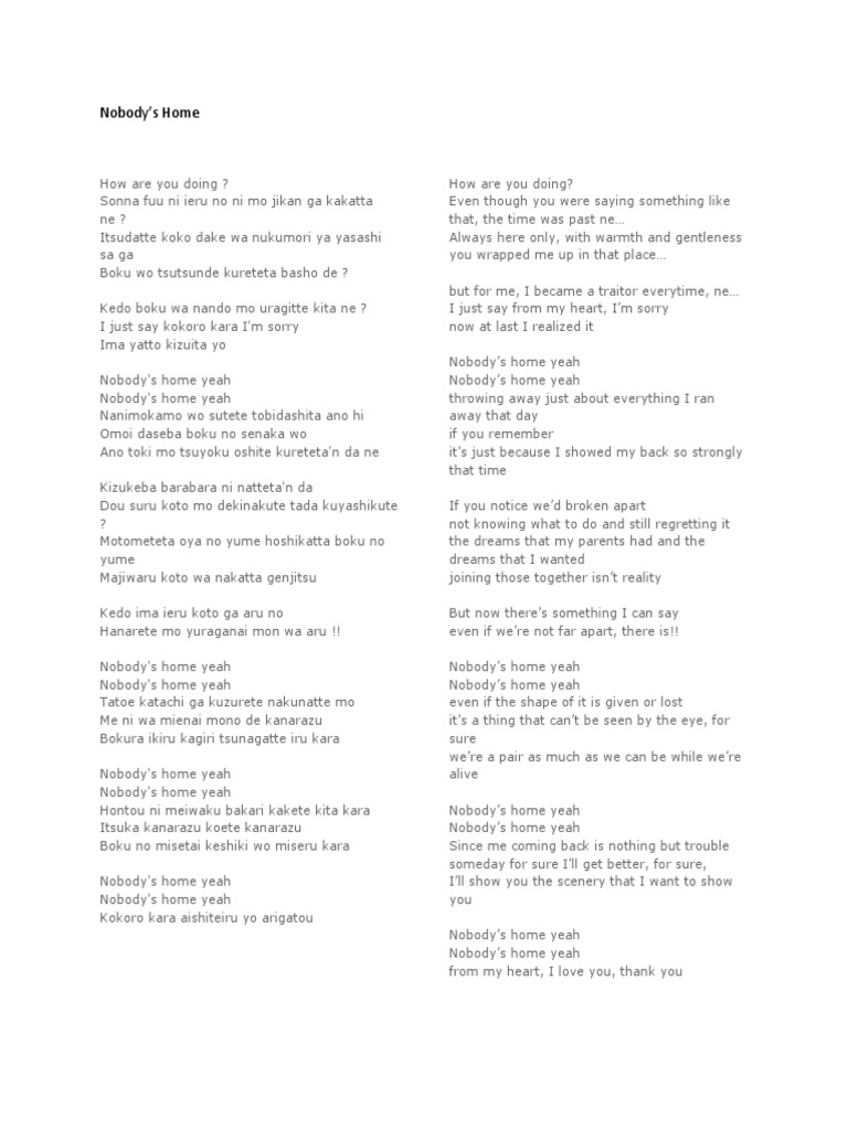 Itsuka kanarazu koete kanarazu Nobody’s home yeah