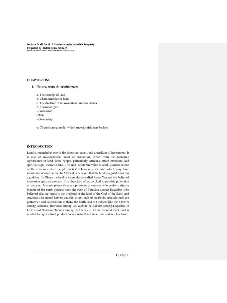 Lawra and Nandom, Tedudu among the Ewes etc. At the national level, land is