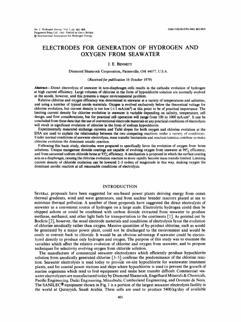 ELECTRODES FOR GENERATION OF HYDROGEN AND OXYGEN FROM SEAWATER 403