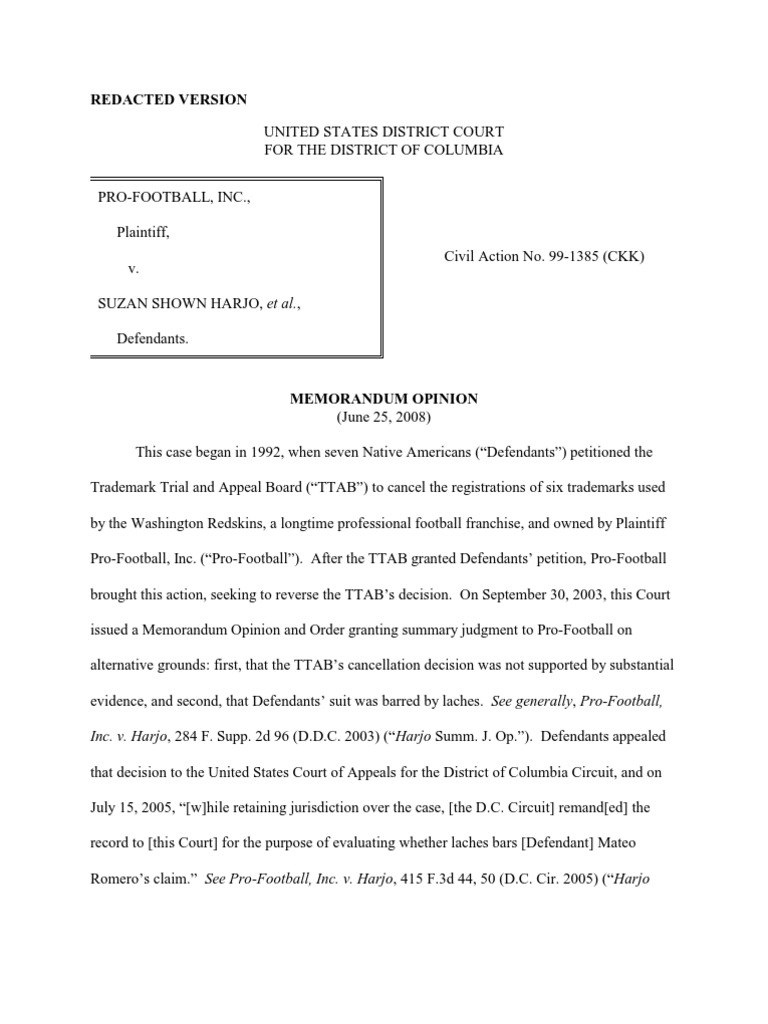 Cross-MSJ at 15 (citing Harjo Appeal, 415 F.3d at 48-49). As Pro-Football correctly notes,