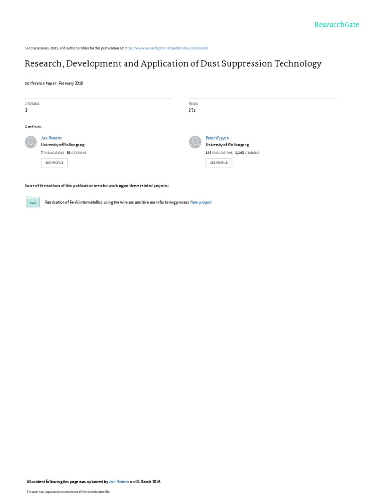 Jon Roberts and Peter Wypych, Research, Development and Application of Dust Suppression Technology, Proceedings of the 18th