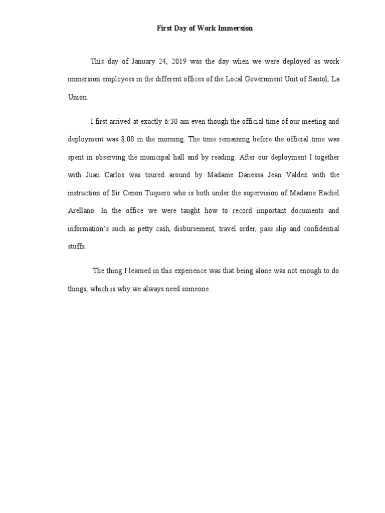 Second Day of Work Immersion