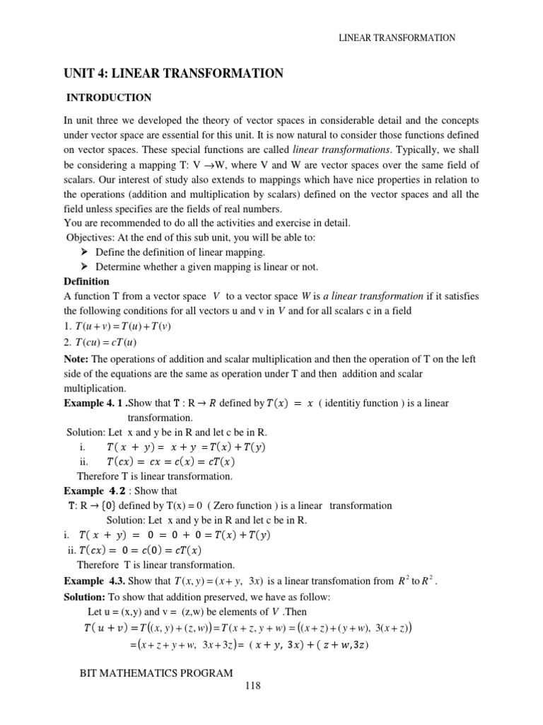 4.1. PROPERTIES OF LINEAR TRANSFORMATION