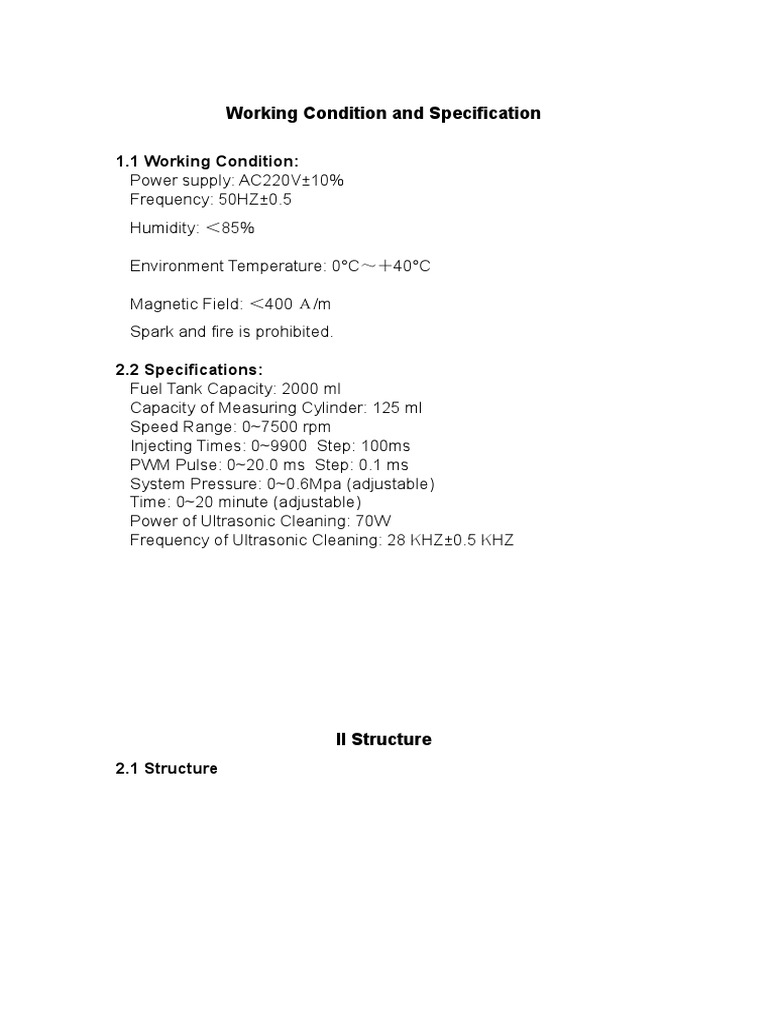 Working Condition and Specification