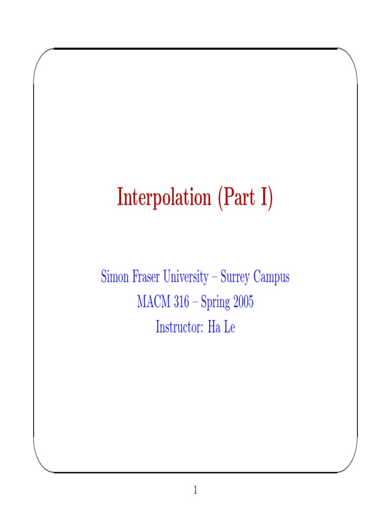 H(x) = f (xj )Hj (x) + f 0 (xj )Ĥj (x)