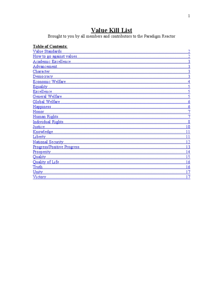 • Too broad, (my value) is achievable and tangible. Character is more than one