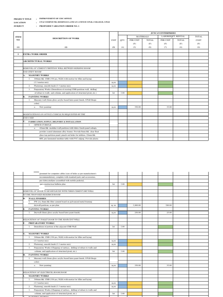 NO UNIT QTY. PER UNIT TOTAL PER UNIT TOTAL COST