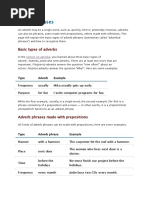 prepositions, others made with infinitives. This page will explain the basic types of adverb phrases (sometimes called "adverbial