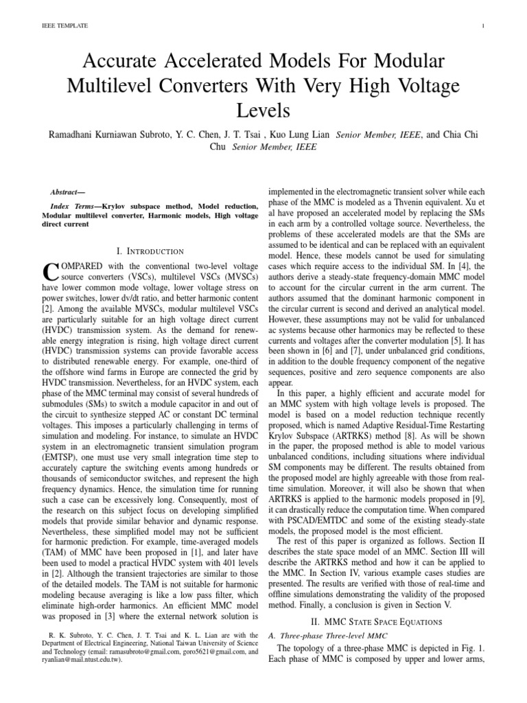 The MMC are connected to the grid and act as current source. existing exponential matrix methods. The main problem of