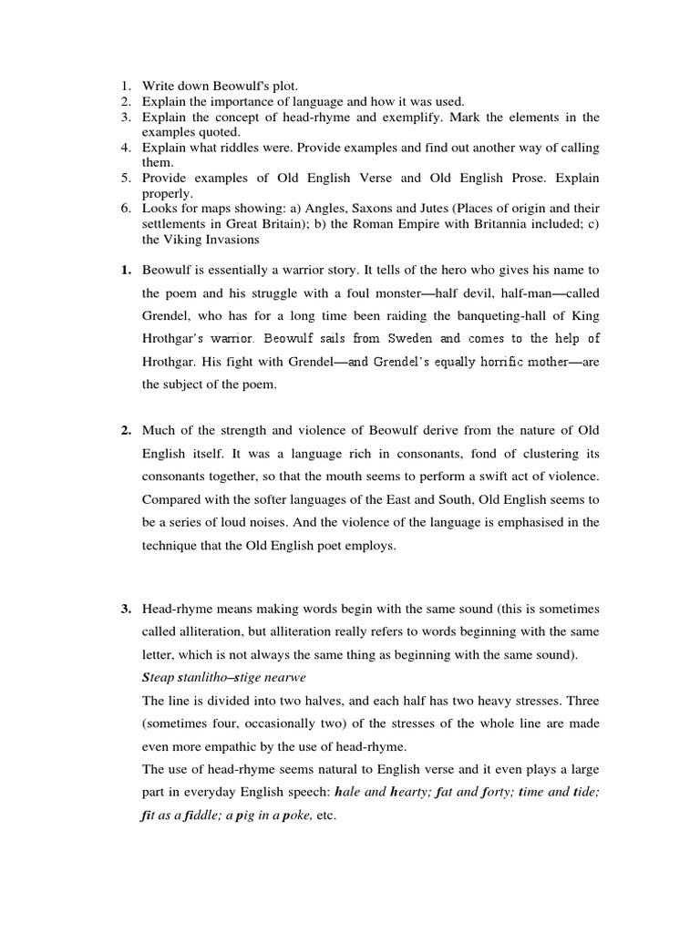 1. Write down Beowulf's plot.