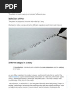 This document provides a template for students to plot out the key events of a story by filling in the important plot points - introduction, rising action, climax, falling action, and resolution - in the corresponding boxes on the graph. The template is intended to help students understand and analyze the plot structure of a story.