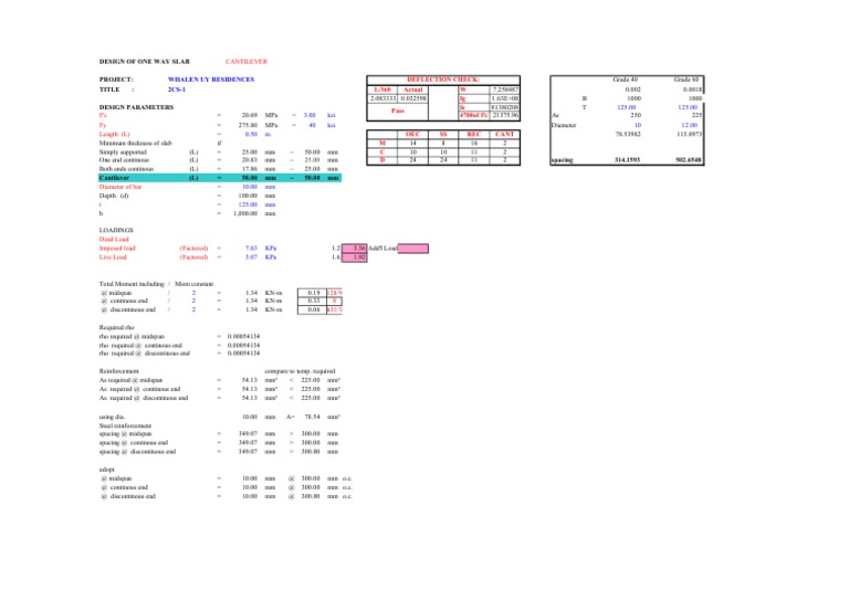 DESIGN OF ONE WAY SLAB CANTILEVER