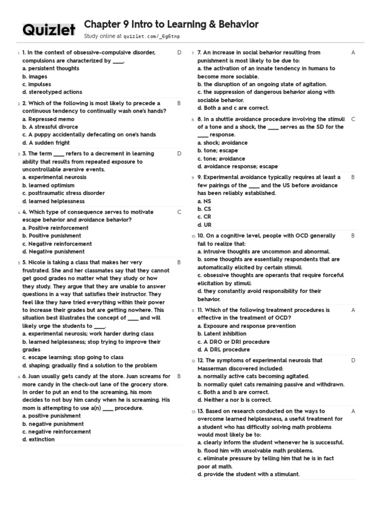130. 131. Arthur owns a restaurant in a neighborhood D 135. 136. Obsessive-compulsive disorders often arise: C