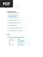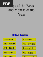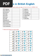 This document is a basic English written test that asks the test taker to fill in the days of the week, months of the year, and numbers 1-30. It begins with spaces for the test taker's name and date and contains lists to complete for the days, months, and numbers in both words and numerals.