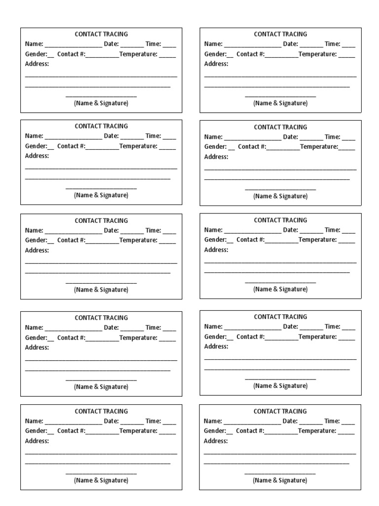 Gender:__ Contact #:__________Temperature: _____ Gender: __ Contact #:__________Temperature:_____