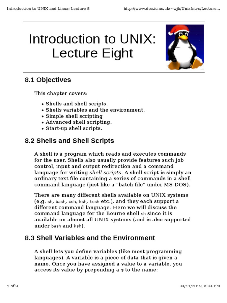 Introduction to UNIX and Linux: Lecture 8 http://www.doc.ic.ac.uk/~wjk/UnixIntro/Lecture...