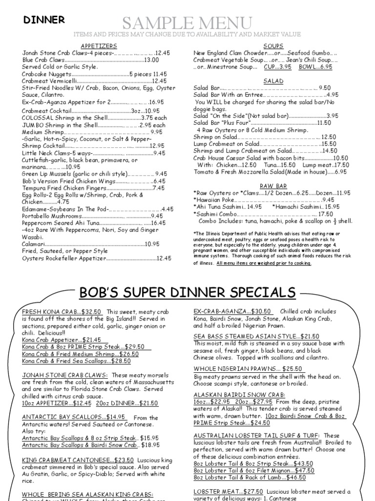 crabmeat simmered in Bob’s special sauce. Also served