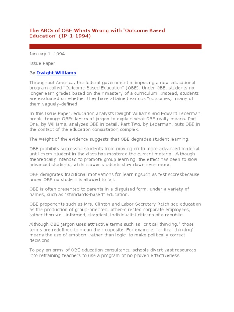 The ABCs of OBE: Whats Wrong With 'Outcome Based Education'