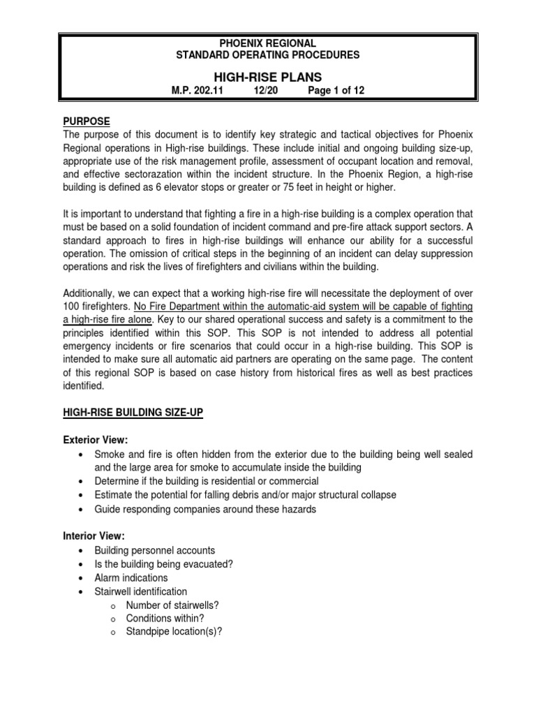 and effective sectorazation within the incident structure. In the Phoenix Region, a high-rise