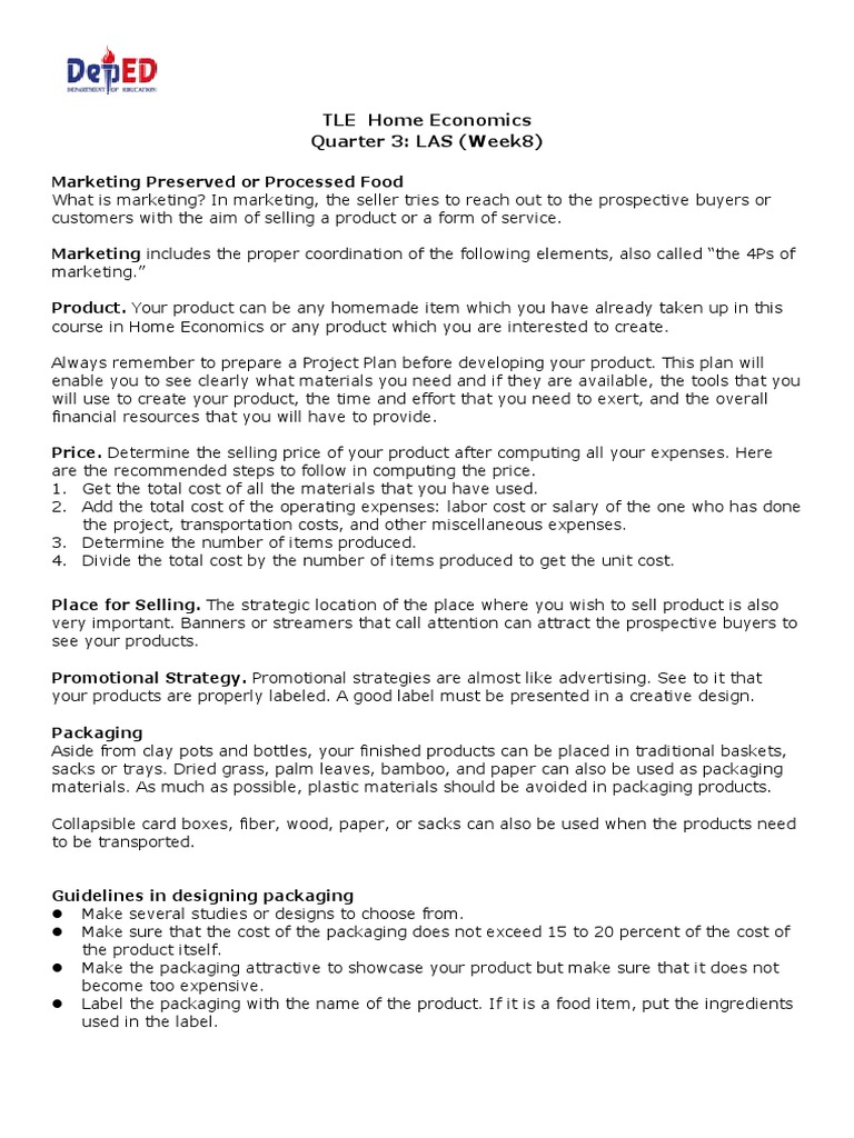 Marketing Preserved or Processed Food