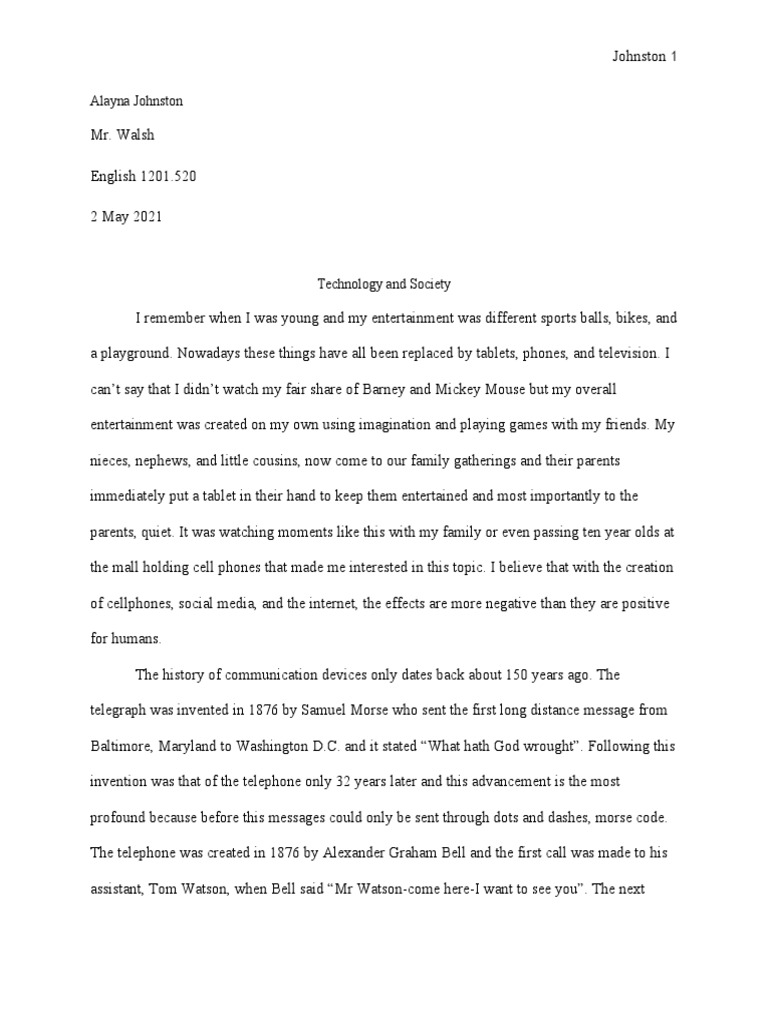 Johnston, Cristlyn. Talking to Someone Who Has Lived through Major Technological