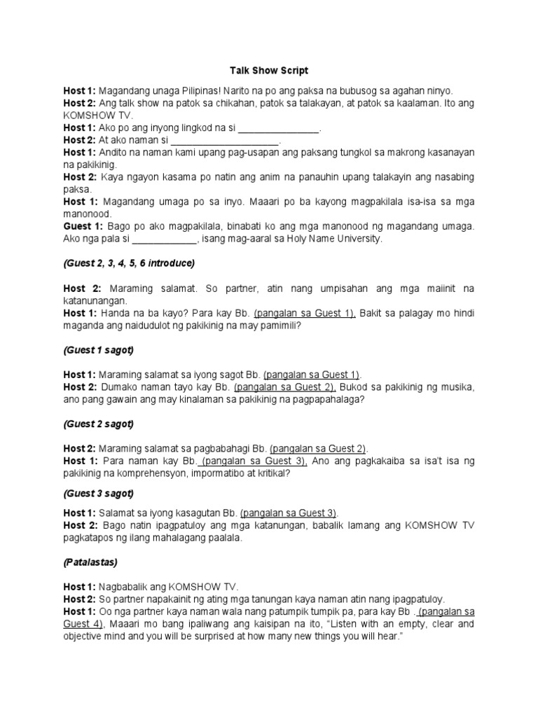 Talk Show Script