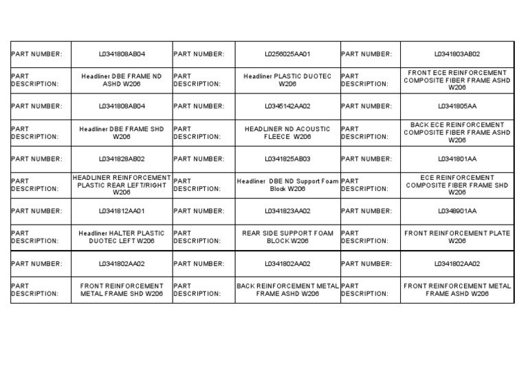 PART Headliner DBE FRAME ND PART Headliner PLASTIC DUOTEC PART