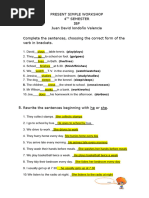 3.Brian …….. like eating fish and chips. D)Complete the sentences using the verbs in the