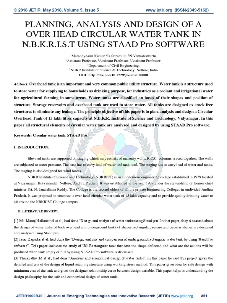 1) DESIGN AND ANLYSIS OF WATER TANKS USING STAAD PRO By Mr. Manoj Nallanathel [1]