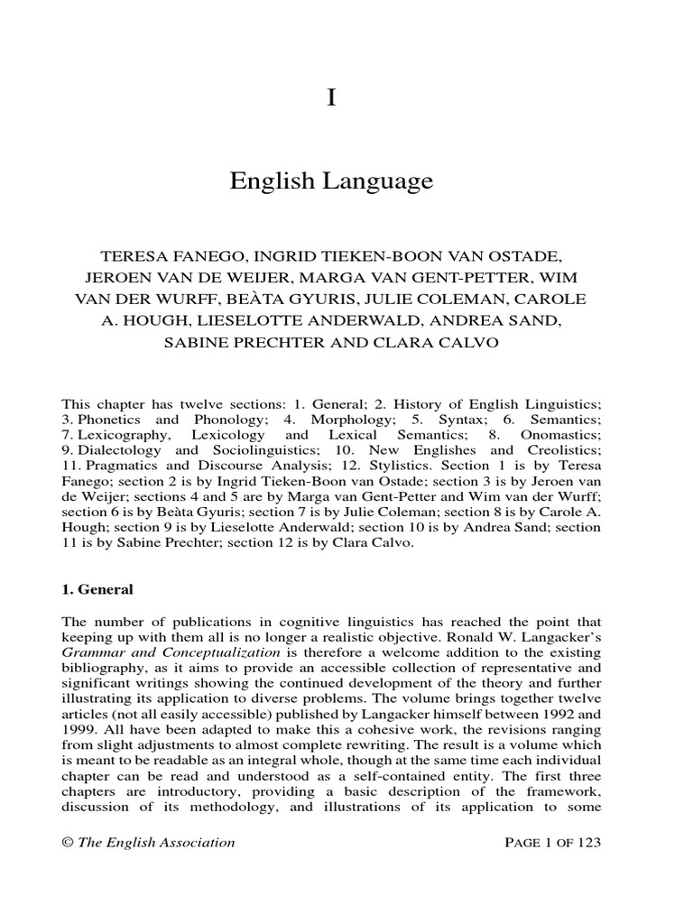French, Russian, Korean and Japanese. The papers on English include ‘A