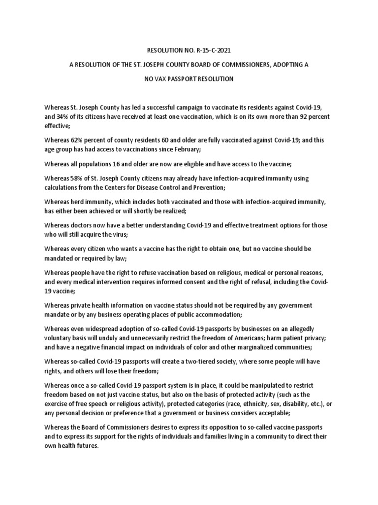 On April 4, the commissioners of St. Joseph County, Indiana passed a resolution against vaccine passports, saying they would “unduly and unnecessarily restrict the freedom of Americans; harm…