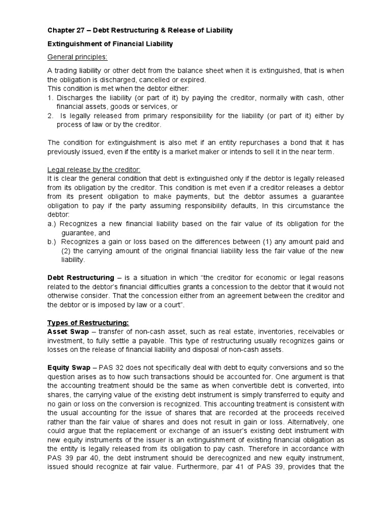 Chapter 27 – Debt Restructuring & Release of Liability