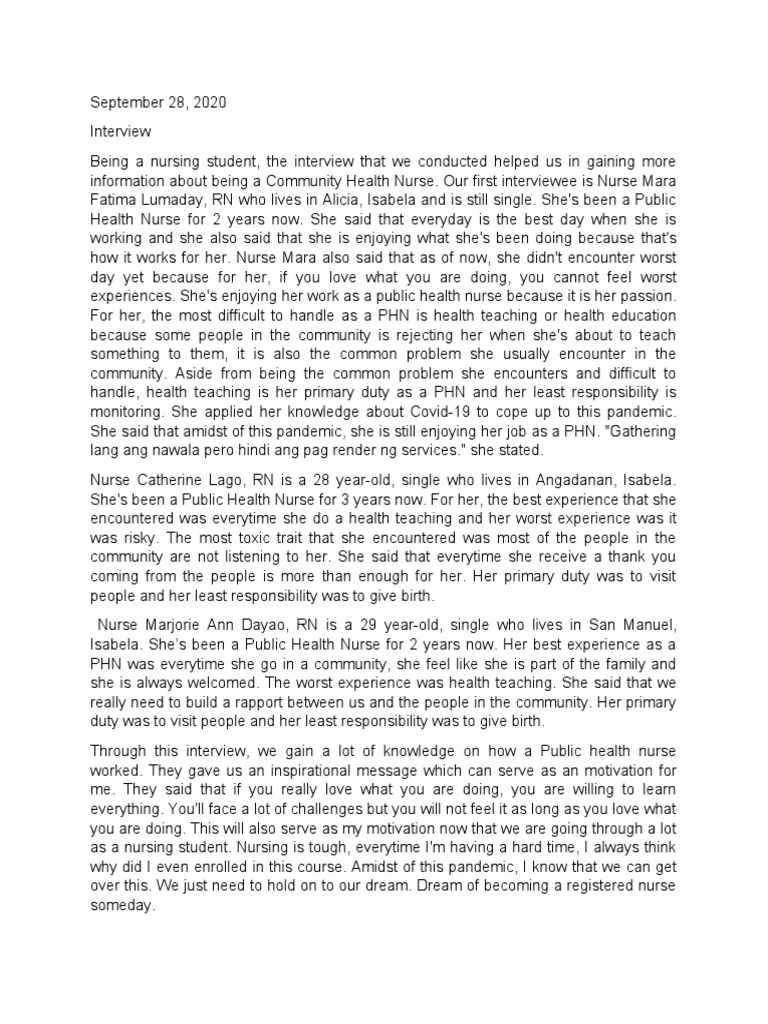 Being a nursing student, the interview that we conducted helped us in gaining more