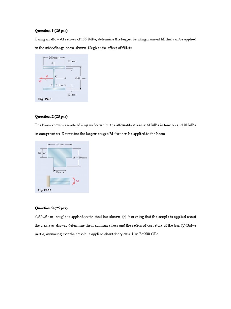part a, assuming that the couple is applied about the y axis. Use E=200 GPa.