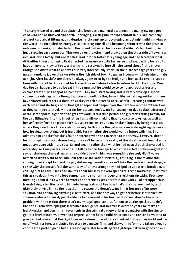 go off with her forever (relating the story to gangster films and the wanting for more taking over, he