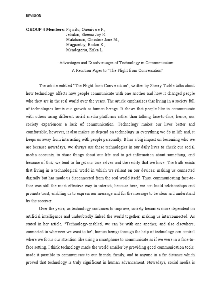of technologies limits our growth as human beings. It shows that people like to communicate