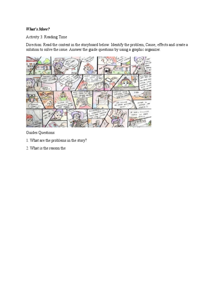 Direction: Read the content in the storyboard below. Identify the problem, Cause, effects and create a