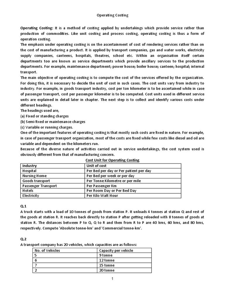 production of commodities. Like unit costing and process costing, operating costing is thus a form of