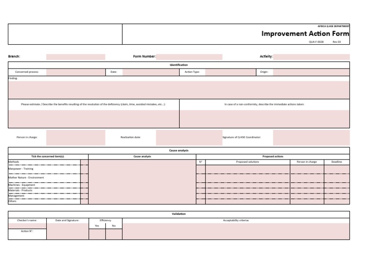 Improvement Action Form