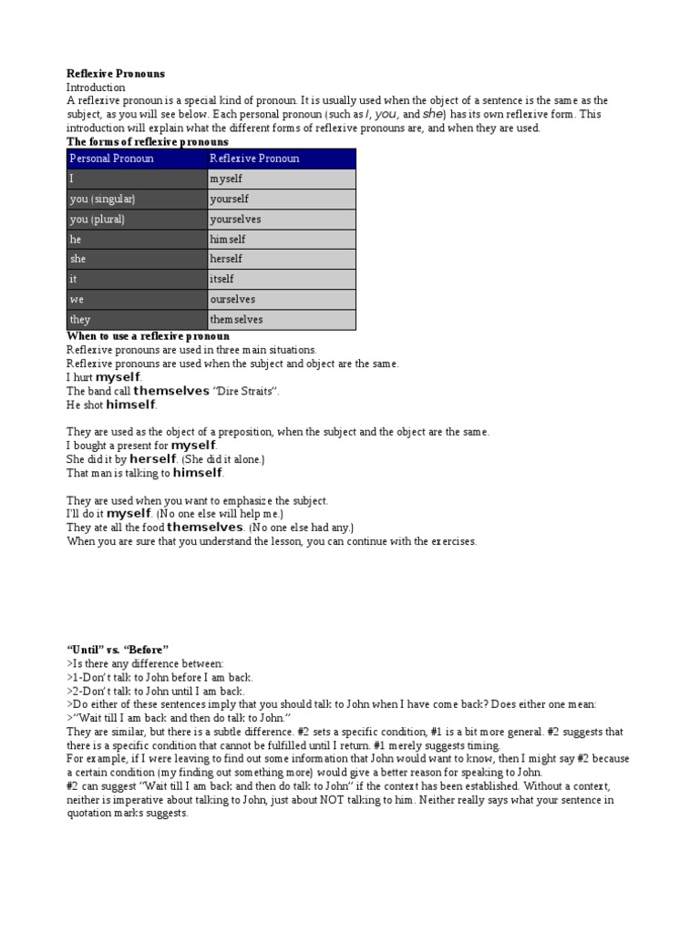introduction will explain what the different forms of reflexive pronouns are, and when they are used.