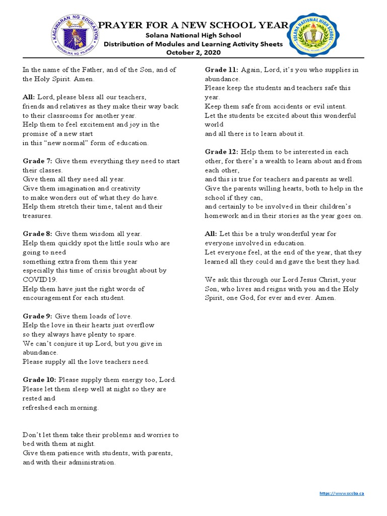 In the name of the Father, and of the Son, and of Grade 11: Again, Lord, it’s you who supplies in