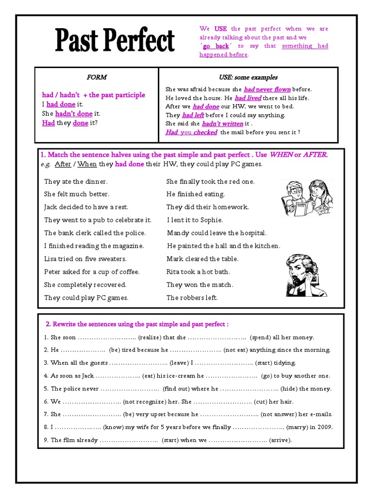 1. Match the sentence halves using the past simple and past perfect . Use WHEN or AFTER.