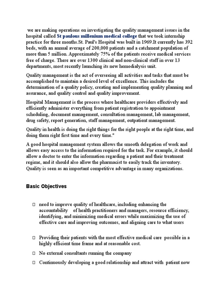 will not matter if the patient is suffering. Therefore, effective hospital management