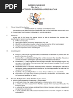 b. Identify the different sections of the business plan, and