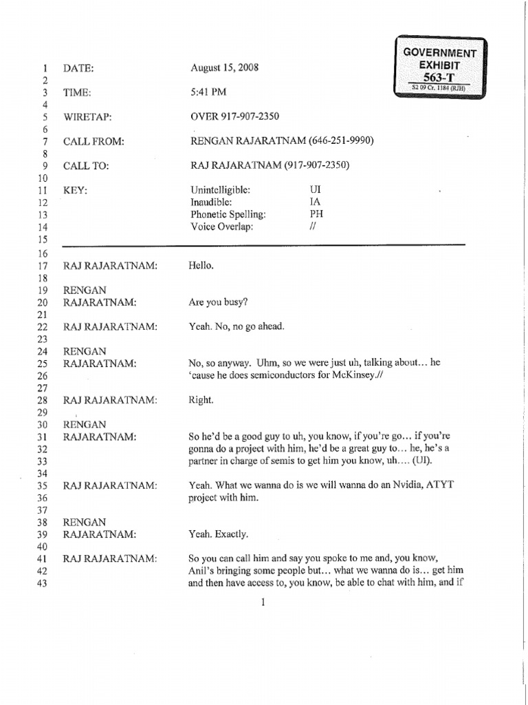 Aug. 15, 2008 Call Between Raj Rajaratnam and Rengan Rajaratnam (3)