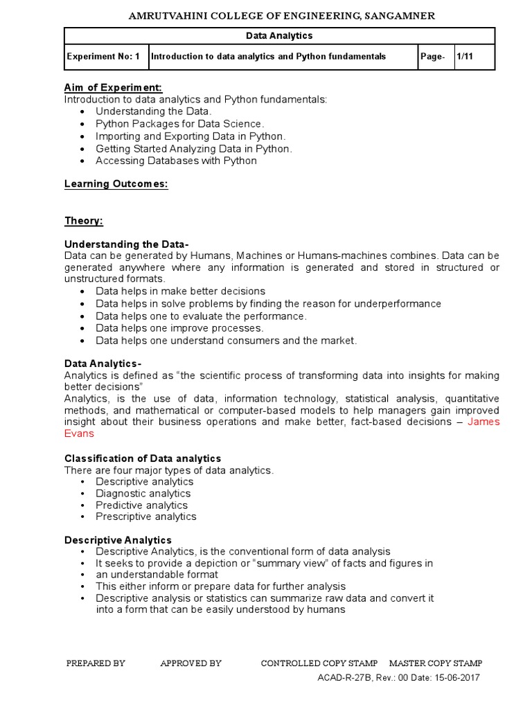 Experiment No: 1 Introduction to data analytics and Python fundamentals Page- 1/11