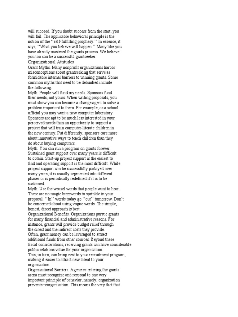 Grant Myths. Many nonprofit organizations harbor