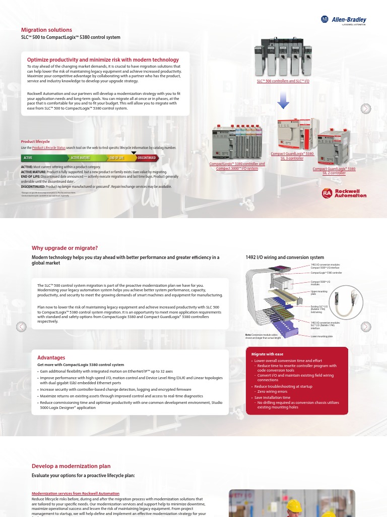 control, sensors, or motor control centers, Rockwell Automation can help migrate SLC™ 500 with CompactLogix™ 5380 control system. Because I/O replacement represents a